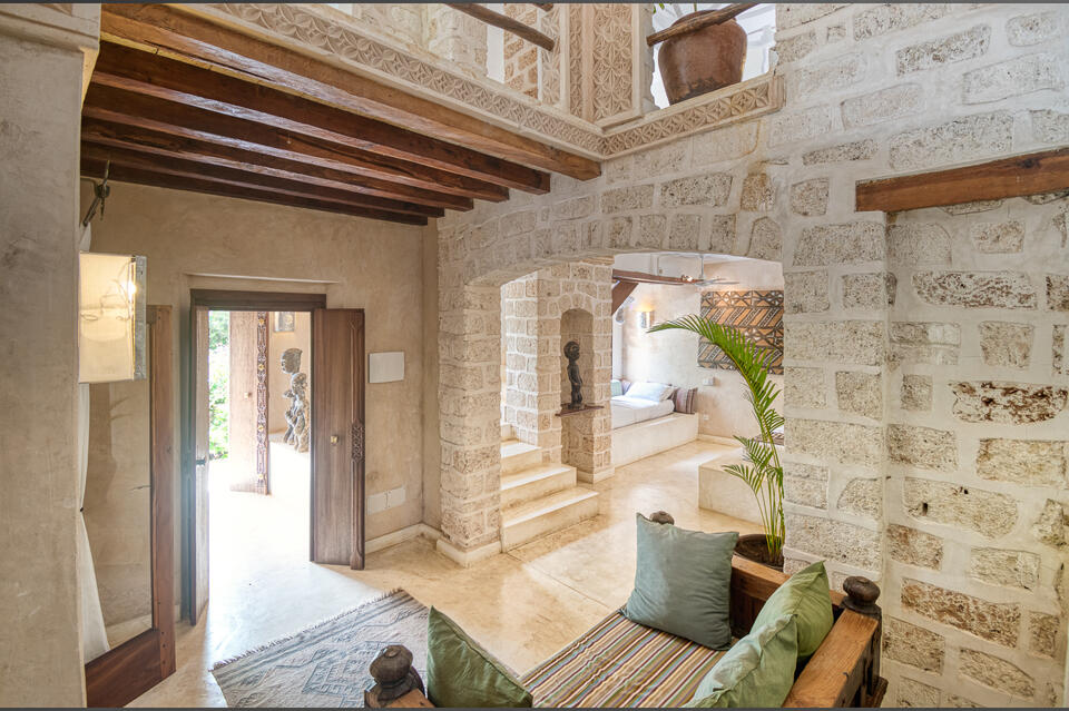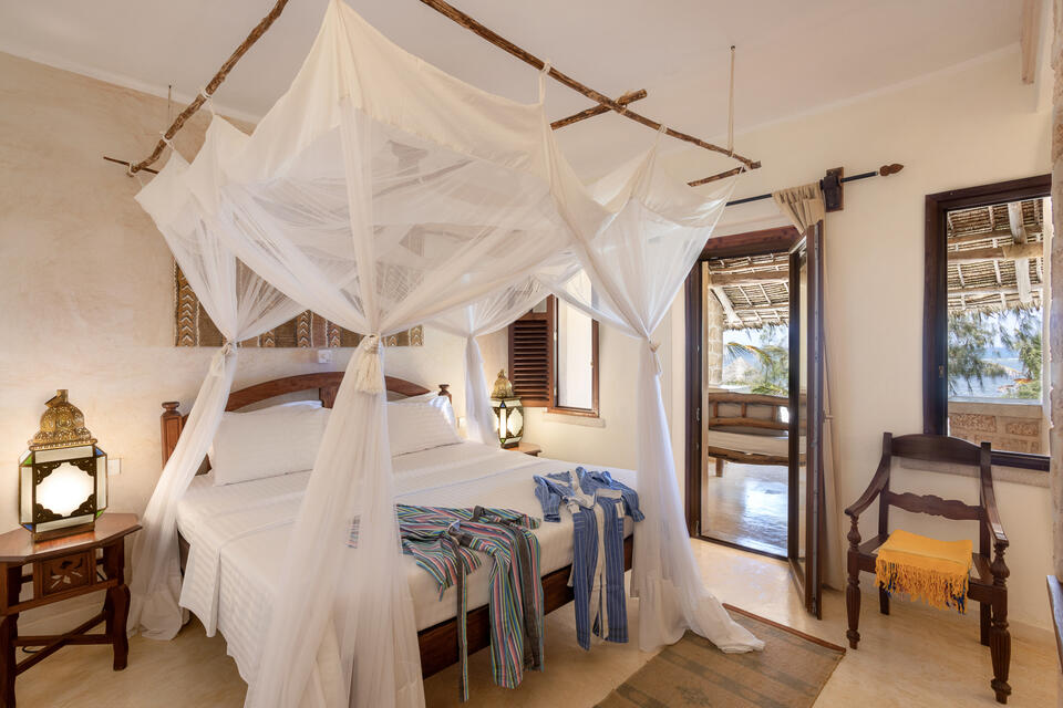 Designed for families who want space to relax and reconnect, the Grand Suite is our largest — and one of our most charming.Set over two generous levels, it features a spacious living room on the ground floor and a bright master bedroom upstairs, both naturally cooled by the ocean breeze and high ceilings.From the private veranda, enjoy lush garden views, birdsong in the morning, and the quiet magic of Watamu evenings.There’s no air conditioning here — nature takes care of that.❤️ 1 double bed (upstairs bedroom)